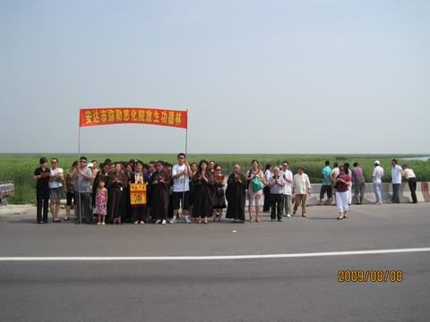 今天虽然天气炎热,但大家都非常欢喜,因为,弟子们都有个心愿,那就是要以此放生的殊胜功德为缘起,祈请上师莅临东北道场弘法利生。下午,大家就祈请上师事宜进行了热烈的讨论,总结了前阶段“广结善缘”的成果,确定了要祈请上师应做的准备工作,并做了分工,都表示要依上师的教导,以广结善缘,精进修法的实际行动,来迎请上师早日北上。