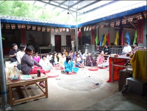 我从自己左边的肩膀向后拍大众的景象,这还是在正式的一座四念处打坐之前拍的,打坐开始后,恕我不能拍照了,这个时候拿黄金来给我也不放弃随上师引导进入禅修的机会。呵呵,所以最精彩的,在心里,在体验里。
