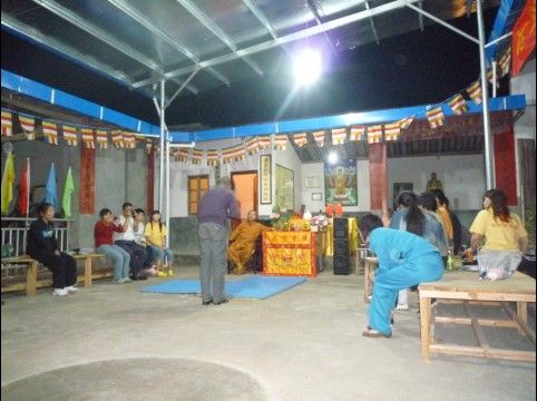 这些师兄们老晚了还不睡觉,拉出垫子来练习大礼拜了,上师真是慈悲,上师什么也不说,从来不说时间合不合适,只要弟子们念在法上,上师就随缘陪着,答疑释惑。