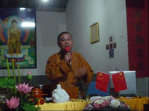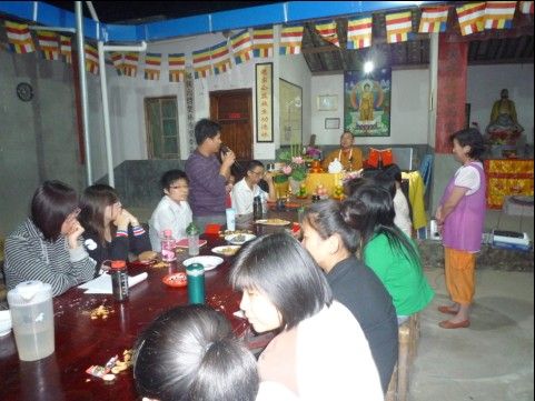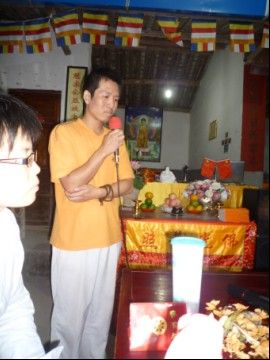茶话会上,请几位师兄出来谈一谈自己为什么学佛,学佛的发心以及遇到的种种问题,上师一一做了点评开示。