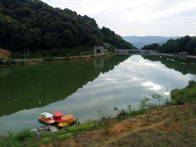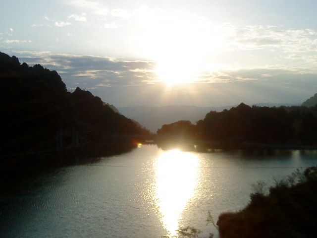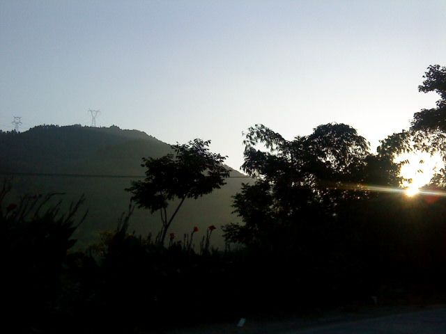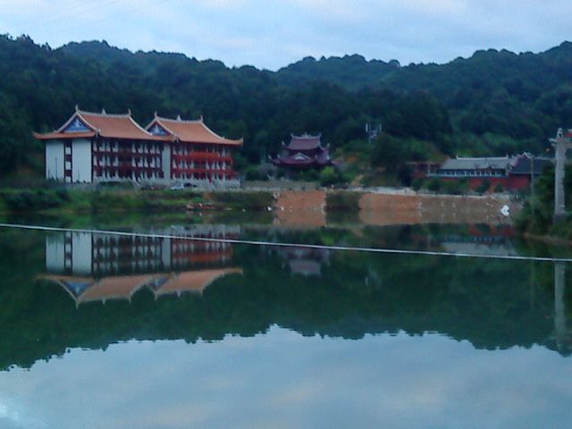 一直以来,对于琼楼玉宇般的建筑,始终没有很大的吸引力,这些砖砖瓦瓦结合在一起,形成的应该是人的气场,如果抛除这个因素,所有的砖瓦建筑,造型也不过是大同小异。林阳寺的建筑不属别树一帜,现在局部还在完善当中,而在我眼中,林阳寺很美,是美在她依山傍水。感受到这里的山水气息远浓于寺院带来的那种远离尘嚣的肃穆氛围,甚至觉得这山水给寺院带来了清新与超脱,似乎有点喧宾夺主。置身其中,找不到禅修的感觉,只觉得自己更像一个游客。(忏悔!)听过几个师兄说怎么觉得这里那么熟悉,好像待过,我于是也上上下下前后左右全方位的感觉一下——还是没找到这个感觉(╯﹏╰),呵呵!如果说似曾相识,对我来说,似曾相识的只是那种意境,一直贯穿在我的血液里,伴随我成长:远山环绕,河流清淌,夕阳斜照,轻烟袅袅,悠绵不绝的钟声。。。如果用蔡琴那首歌词表达可能更合适吧——是谁在敲打我窗,是谁在拨动心弦。。。是啊,是谁拨动心弦在钟声响起的时刻?或许这个要到远古以前去找寻吧!跑题了,话说林阳寺——从我们三楼的阳台望过去,是欣赏林阳寺最佳的角度:往左看去,是林阳寺的大部分庙宇,高低排列,错落有致,偶尔可见院内悠闲的出家师父;往前看去,可以看到山、天交接处的缠绵和绚烂,往近看就是山的一侧依偎着小桥和盘山公路,往下看,可以在湖水中纵览这一切,山,天,桥,树,以及日出时在水面上留下的旖旎的身影,然后就是颜色和光的交叠。总之,回想林阳寺,就是这样一幅生动的山水画。