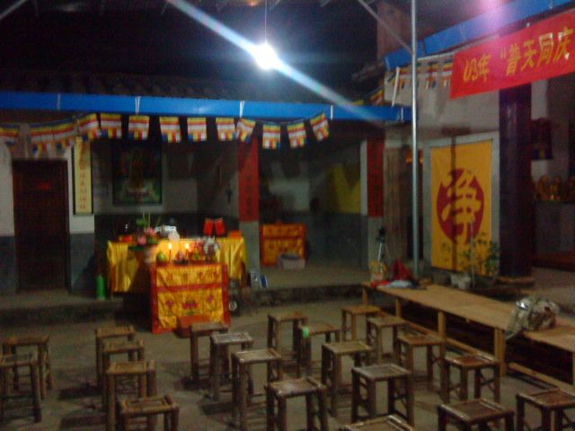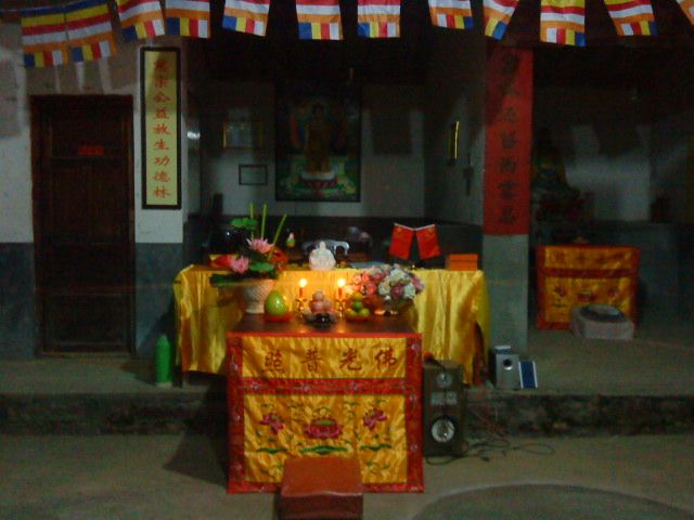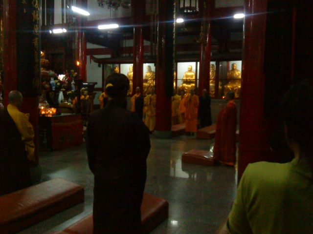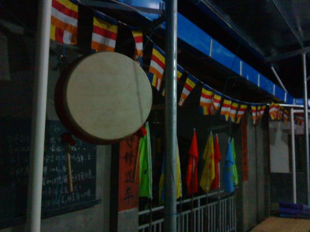 林阳寺最值得记录的还有两个,一个是慈悲的上修下达方丈请我们喝茶聊天,就算是为大家接风吧,方丈热情的命护持给我们拿糖果月饼,我们对方丈做了供养。方丈很欢喜,为我们讲述林阳寺的历史和未来发展规划,并领大家到他禅房的大凉台上欣赏了林阳寺的夜景,当时我心里却只想着:“将来,我们为上师也建一座这么好的寺院,请上师安住和弘法利生。”;另外一个是连续两天晨起跟随师父们做早课,课的内容是无关紧要的,给我们法本根本就找不到唱到了哪里,但是梵唱很好听。寺院里做早课,就象满一个愿一样,体会庄严肃穆的站到大殿上,方方正正规规矩矩的闻钟鼓声,礼佛一拜,开始一天的修行。