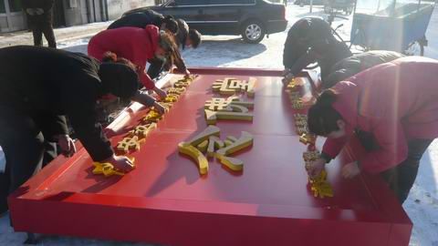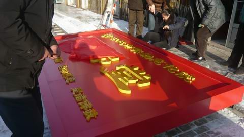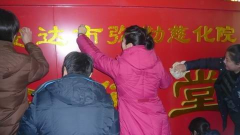 公元2009-11-28日慈化院的师兄上午共修后,趁着午休时间赶在吃午饭前,慈灯静心慧清明会慈欣等一起去找牌匾店,到第一家看了一些样板与设计的颜色不太一样,接着大家又继续寻找。静心明会慧清还在铁西等地方打听价格 ,经过仔细筛选,12月5日最后决定,还是在第一家做。