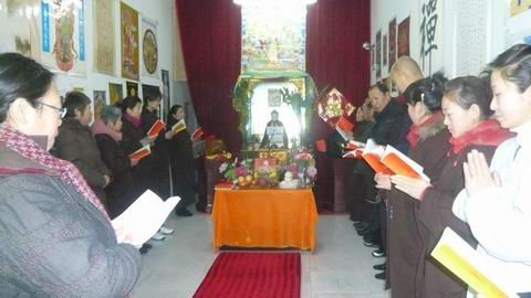 一周后,12月12日周六慈化院共修的吉祥日,尽管气温在零下20多度,但在上师的慈悲加持下,慈化院内的众弟子和院外的新结缘的张张崭新面孔满怀喜悦的笑容和对上师的忆念圆满吉祥地完成了挂牌仪式。