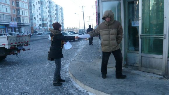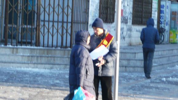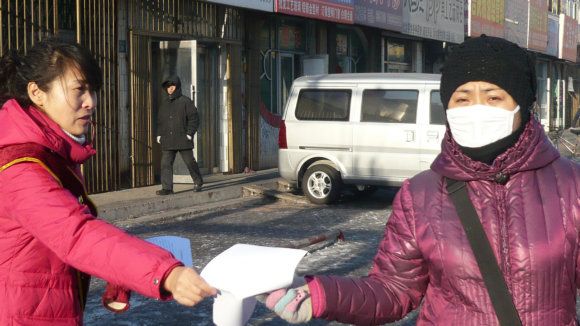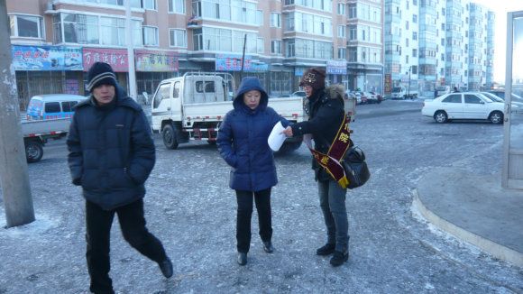1月21日慈波 慧安 慧清在街头发传单
