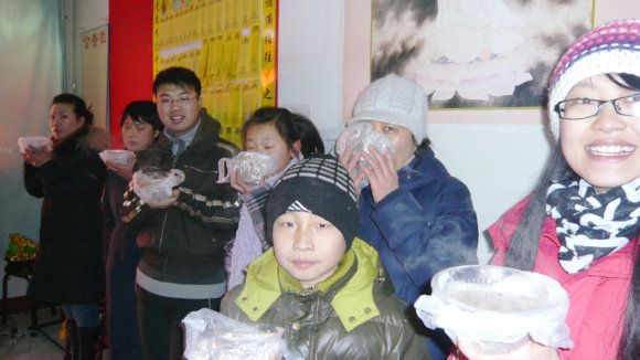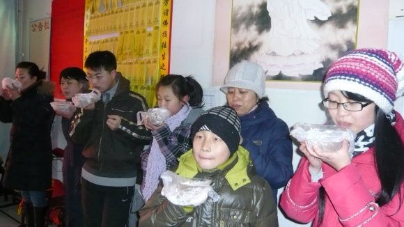 一年一度腊八节,今年腊八别样浓。蒙上师慈悲加持,今天的施粥活动圆满成功。在施粥活动中有前来讨粥的新信众,也有前来随喜的师兄,活动中先后有近百人次参加,施粥一百三十余份(碗),同时结缘上师讲法开示的光碟二十几套,宣传单发放二百余份。许多信众表示以后要多来参加慈化院的活动,与上师三宝结法缘,不只求吉祥,更要求得渡。