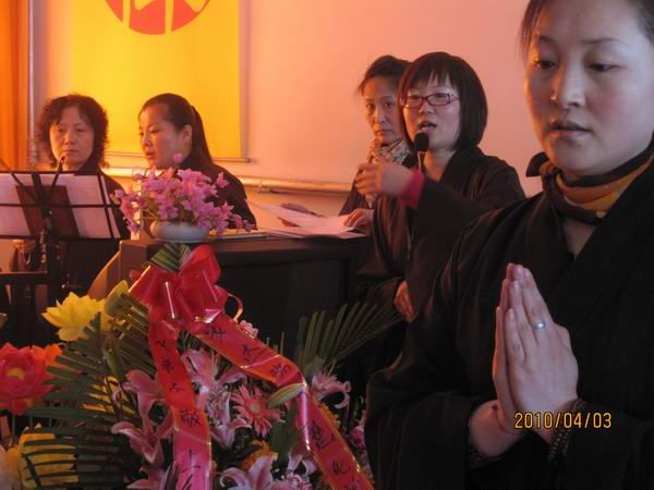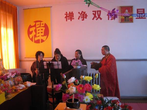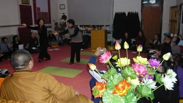 法会结束后弟子们开晚会,用佛歌赞偈供养法师