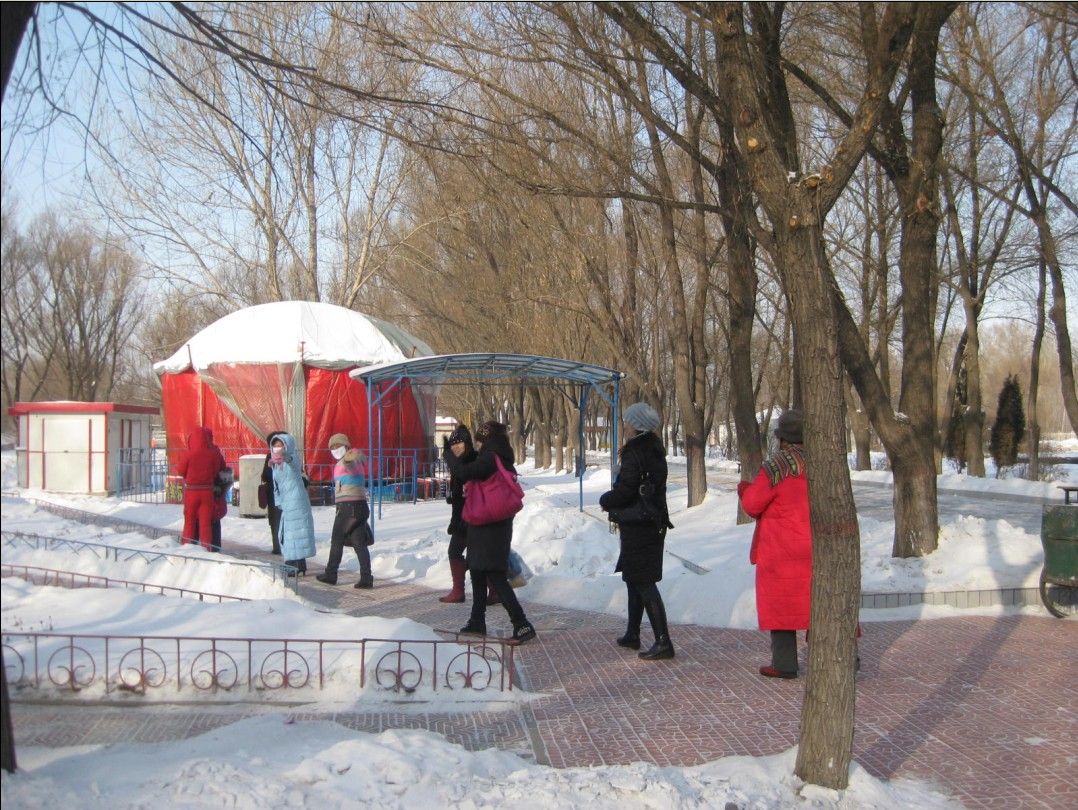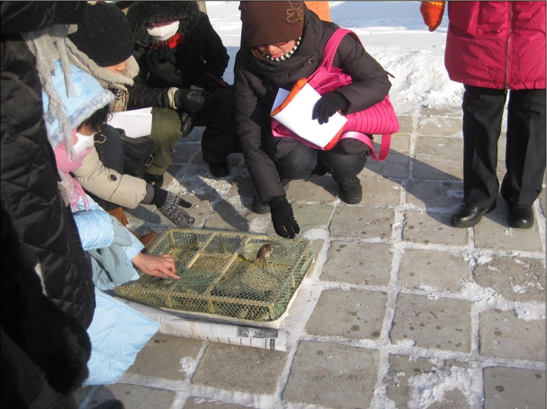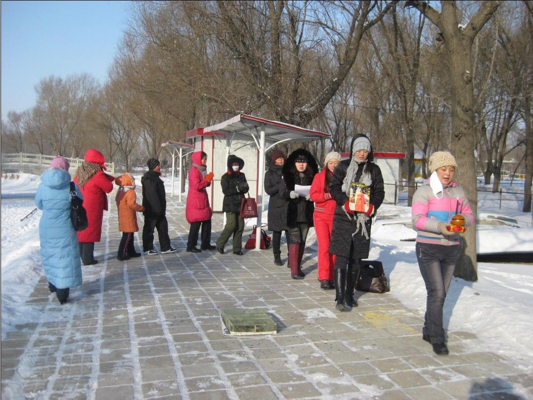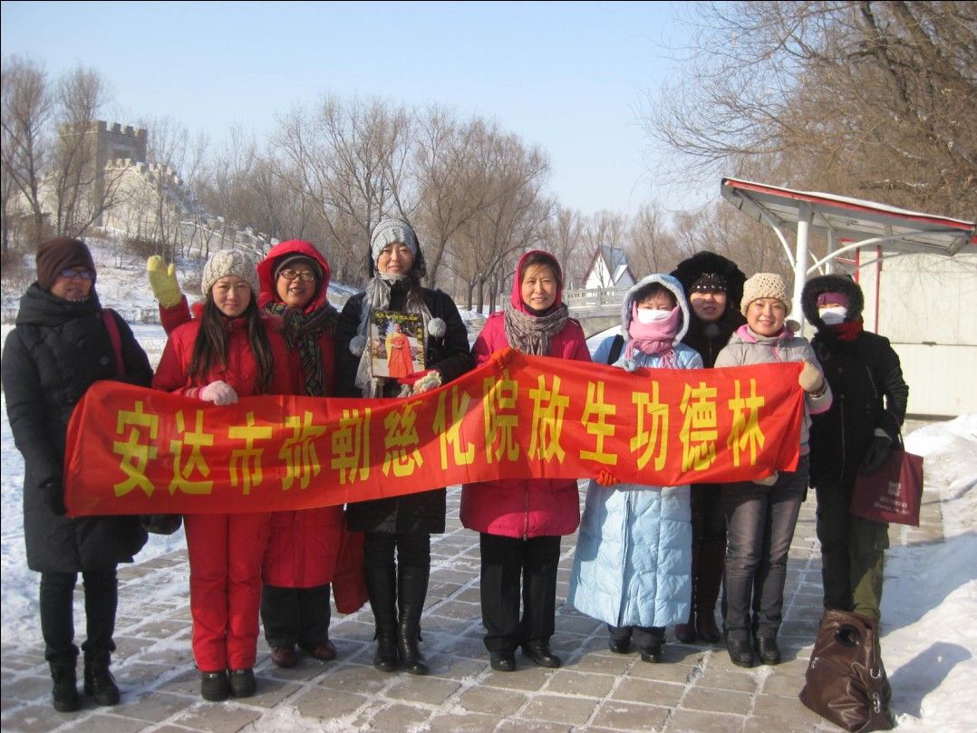 二0一0年十二月二十五道报,安达弥勒慈化院弟子庆贺上楞下严法师诞日,今天在安达市区公园自发随缘放生。