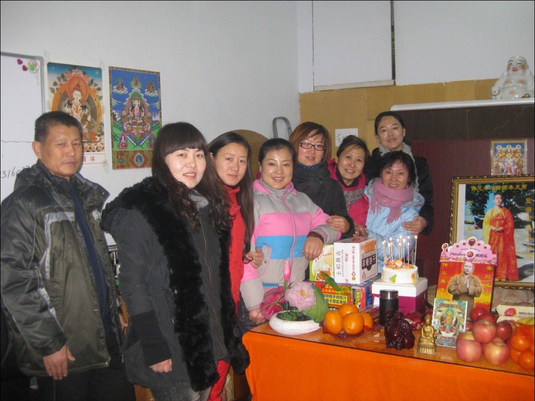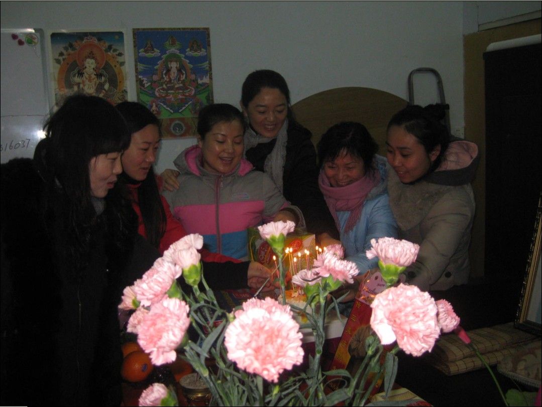 初次为上师庆祝生日,兴奋、激动,虽然上师不在东北,但“生日宴”气氛不减,热情不断。特别值得一提的是慧静师兄非常有心,特意为上师订做了生日蛋糕,亲手为上师法相佩戴生日皇冠。弟子从慧静师兄身上也查找到了自身存在的不足,随喜慧静师兄,随喜各位。