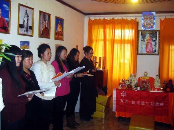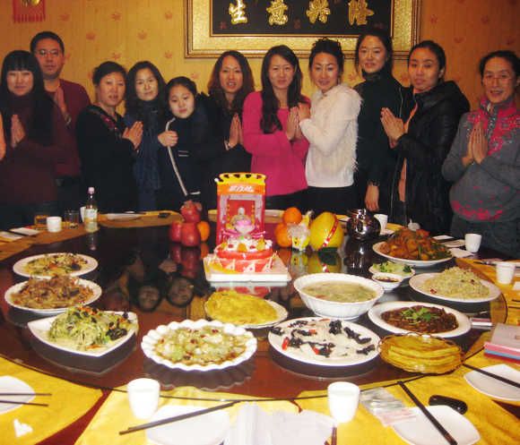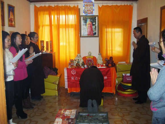 聚餐时——“祝上师生日快乐!法体安康、法轮永转、长久住世!”