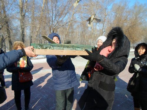 一,放生。放生活动按仪轨在10点准时举行,虽然天气寒冷,但是大家还是虔诚而恭敬的祈祷上师三宝的慈悲加持,观想着上师普降甘露与苍生万物,让众生早日离苦得乐。这次的放生款没能全部买物,根据上师的慈悲开示,因为气候的原因,等到环境适合一次放完。在选择放生的地点时,大家为鸟儿选择了公园,既安全,又有很多树木,又容易觅食。