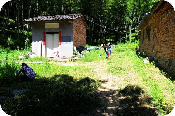 普毓,小林和上师妹妹在烈日下除草