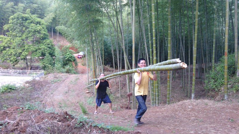 午饭后,上师交代说:每人扛一根竹子回来。听完上师的话,我的第一反应就是用斗车,大家一起拉竹子,每人就不止只拉一根了,效率可以提高。