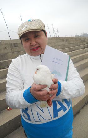 今天是牡丹江慈宗放生功德林的放生日,我们又组织放生活动,今天来参加的有四人,(橙露宝贝、裕晗、净然、法界众生)一人随喜参加(顺其自然)。昨天去联系车,有人听说我们今天去放生,特送来一只家里养大的甲鱼,让帮助放生!还放生白鸽子一只,放生款共计三百九十元!今天虽然参加的人数不多,天又很冷,我们还是法喜充满!由其橙露宝贝是第一次参加放生的活动,她买了鸽子放生,当听人说鸽子还是会飞回去的时候,她有些担心!我们劝解她,我们的放生是我们对它的祈愿,希望它能得解放,但以后的路要靠它自己选择!而且我们为它念佛,诵皈依偈,为它种下了金刚菩提种子,让它最终成就得解脱!是利益它的大事!她听了,舒心的笑了!之后又跟她讲了放生的意义一个是解救生灵的生命,再就是解救它们的慧命,还有我们自己的慧命!同时因为一起放生,与上师三宝,及参加活动的善友结下了善缘!所以放生活动非常殊胜有意义!