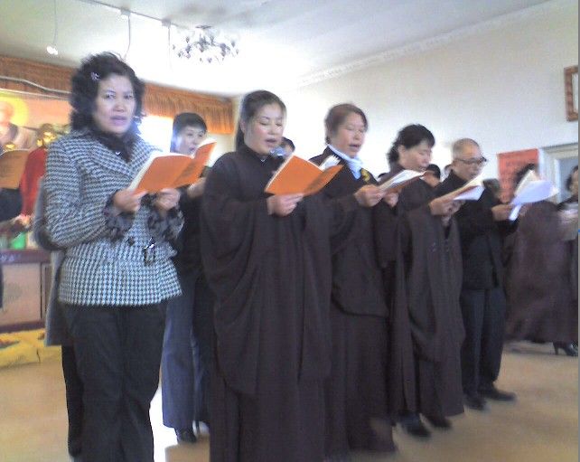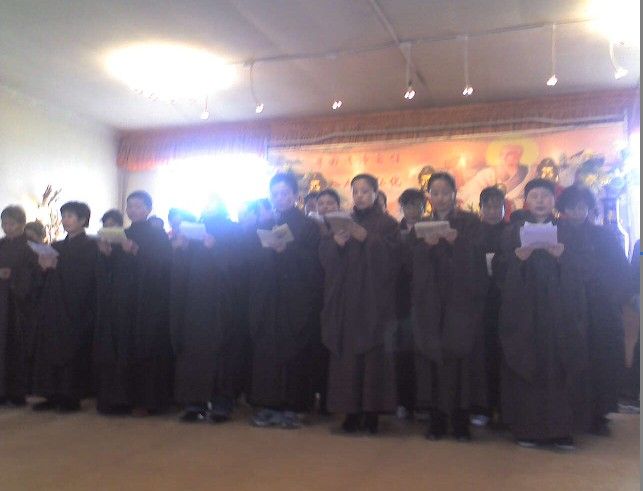 遵照大恩上师“团结协作,广结善缘”的教诲,法会中明会师兄代表弥勒慈化院,向念佛团的全体同修道友表示祝贺,并对念佛团对弥勒慈化院的支持和帮助表示感谢,在下午的联欢会上,慈化院的师兄们共同表演了合唱《弥勒四礼文》(玄奘法师词、楞严法师曲)、《弥勒大皈依处》(楞严法师词、台湾妙莲花唱片公司曲)、《感念师恩》(楞严法师词、佚名曲)等节目,受到在场的同修道友的欢迎,表演节目的同时,我们把大恩上师作词的佛曲歌词复印后发到众居士的手中,让大家对慈化院对弥勒净土有所了解,有很多居士询问弥勒慈化院的情况,也有很多道友表示要与弥勒慈化院结缘。