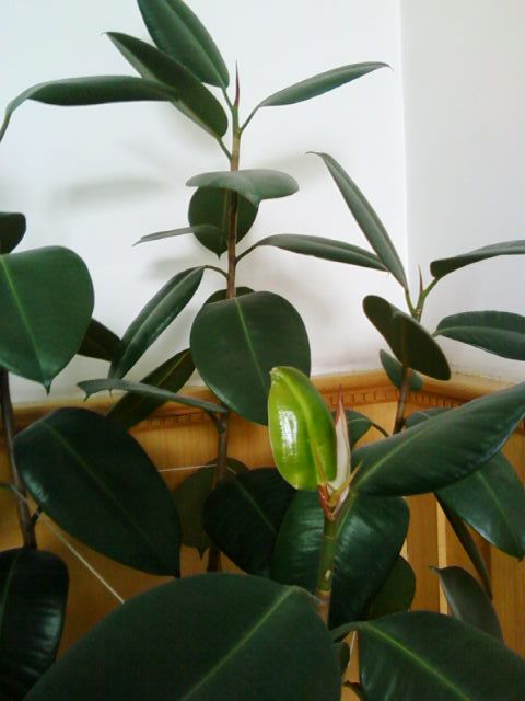 一年了,这花也没有什么变化,一直是墨绿的叶子掉过几片,好像生长非常缓慢的样子。昨日忽然发现,一个枝头发芽了,居然长出一片嫩绿的叶子,看样子已经长出来有几天了,嫩绿的色彩和旁边墨绿的老叶子迥然不同,真是让我有些惊喜,看来出现了转机,这花打破了长期的休眠,开始发芽、生长,一片片墨绿中的一点嫩绿,使我看到了希望。