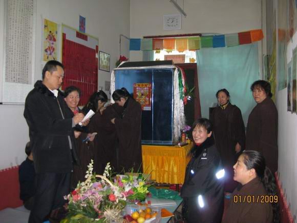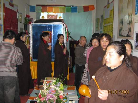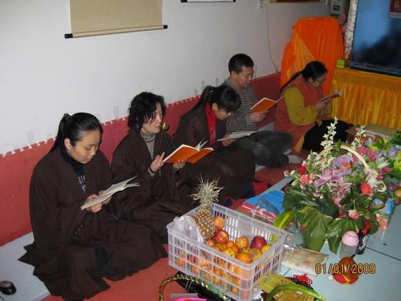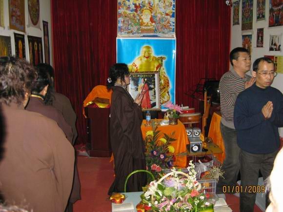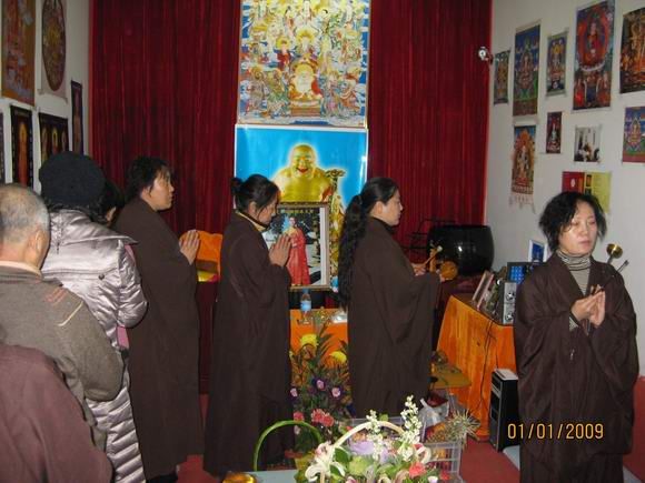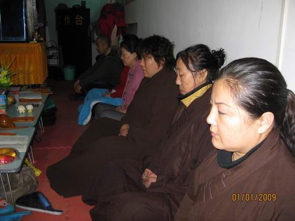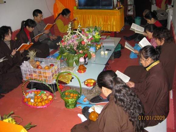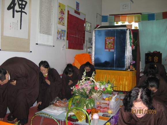 新年的第一天,大恩上师已经外出不在道场了,这一百多天来上师给我们讲并传了不少的法,我们都要精进依教奉行。按照上师的指示,安达弥勒慈化院如期举行新年共修活动。师兄们早早来到道场,开始准备。共修下午两点钟正式开始,按上师临行前的指示和要求,每次共修都得设有两个人:一个负责解说活动程序,一个负责礼仪规矩监督。此次共修由明会师兄讲解程序,因事先没有商定和说明,且怕新来的同修不明白,明会师兄根据平常上师教的做了些讲解和说明。慈灯和慈欣负责监督秩序。