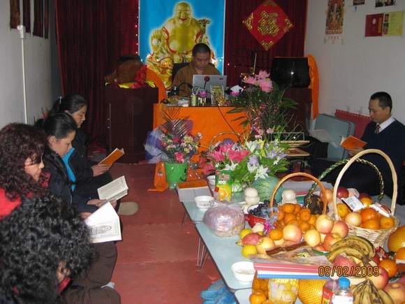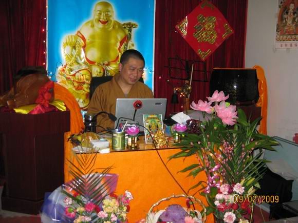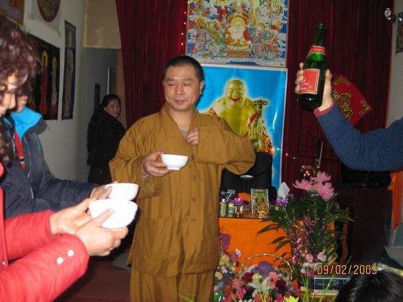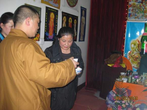 2009年2月10日报道,昨天是元宵佳节,安达慈化院全天开放,此是上师春节后来到安达后举行第一次对外法事,继上午的佛前大供佛事活动后,晚上慈化院灯火通明,在一片欢声笑语声中,慈氏弟子斟满甘甜的果汁,上师慈悲的为每个弟子加持祝福,遍洒甘露。在这个欢庆的夜晚,上师为弟子们传受心法----〈解缚咒,狮吼咒〉和《般若波罗密多心经回遮仪轨》,使弟子感恩万分。上师教导弟子们:“年是魔,2008的魔过去了,大家要精进修行,在修行的过程中,不断成熟善根,通过修行达到用佛心做佛事。