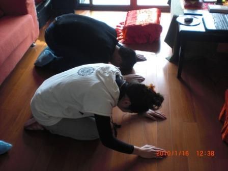 慈昀师兄正在学习和练习小礼拜动作