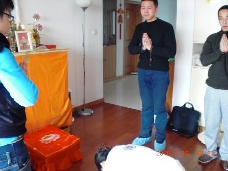 顶礼上师! 在大恩上师的慈悲加持下,上海的师兄们组织了第一次共修活动。 慈昀师兄家里设有佛堂,在大家强烈的共修愿望和慈昀师兄的盛情邀请下,弟子们在慈昀家里进行了第一次共修。 参与本次共修的师兄有:慈明、慈远、智清、慈昀、妙湛。 依照大恩上师的开示,本次共修内容为:四皈依礼拜和瑜伽唱诵。