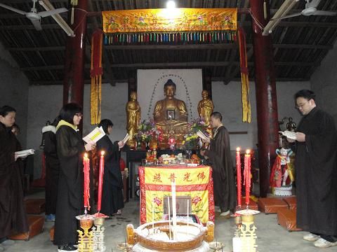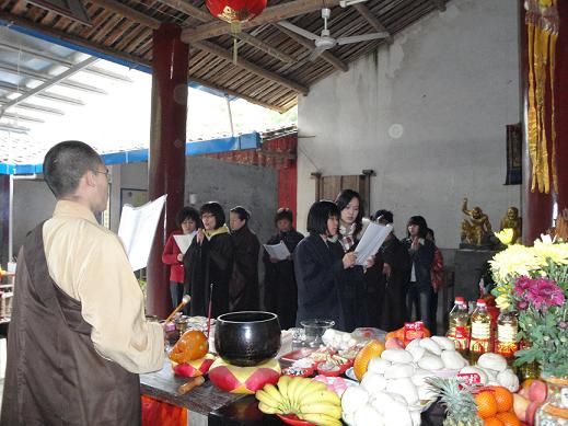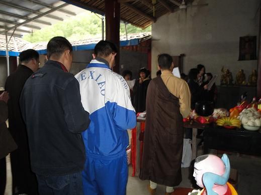 2010年农历19日观音菩萨诞辰,福州道场师兄们汇聚云林寺,举行观音法会,供佛放生,共修结缘。 上午,师兄们根据上师法意唱诵了观音菩萨诞辰仪轨,拈香供佛,结缘放生,并由此缘起回向众生,祈祷上师三宝长久住世,法轮常转,吉祥如意。 下午,师兄们在湛越师兄的组织下,开展了共修。大家就各自依师修行的现状和下一步打算,进行了交流。湛越师兄引导大家端正自心,树立对上师三宝真正的皈依修行信仰。 参加法会的有:湛越、道敬、恒光、道振、道心、道圆、道闻、道晓、恒清等师兄和小龙、李梅一家及附近村民信士20余人。